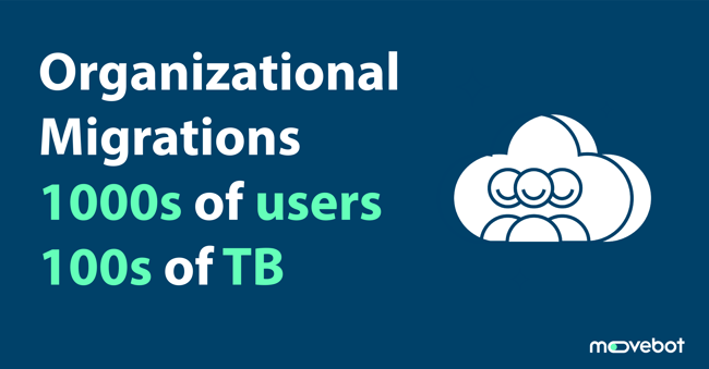 Sign up now →If you're looking to migrate a large organization--we're talking tens of thousands to hundreds of thousands of users with data volumes in the petabytes--knowing where to start can be difficult. Not only do you have the human element of the migration, including working through change management, but you also need to find the right tool that keeps the process simple, cost-effective, and can handle migrations of this size. There's no doubt that large organization migrations take a lot of careful planning for best results, but Movebot will make sure the migration itself will be the least of your worries.