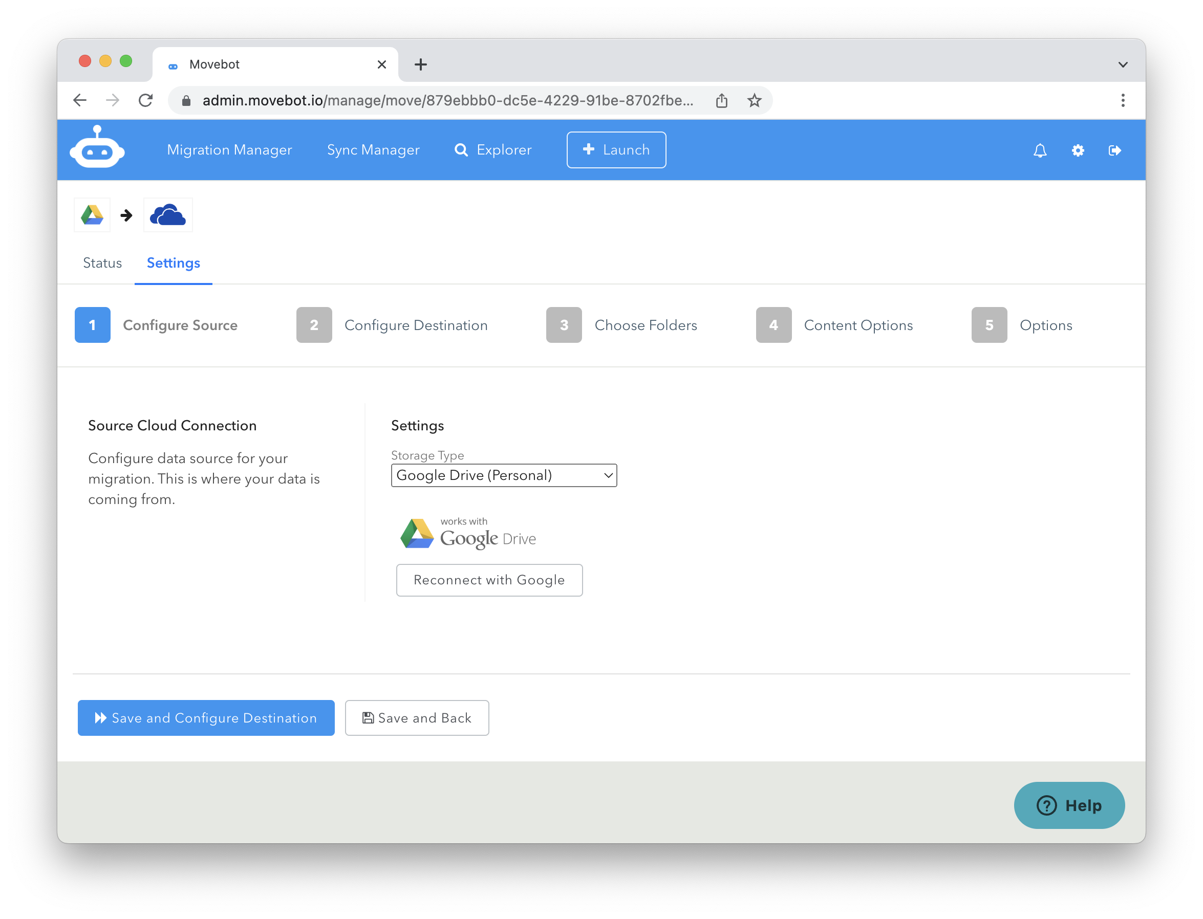 Movebot keeps things simple with set per-gigabyte pricing. You only pay for what you use with no fees or other gotchas, with lower rates the more you move. And once you sign up and log in, Movebot guides you through everything you need so you don’t need a PhD in computer science specializing in file transfer protocols to do basic tasks.